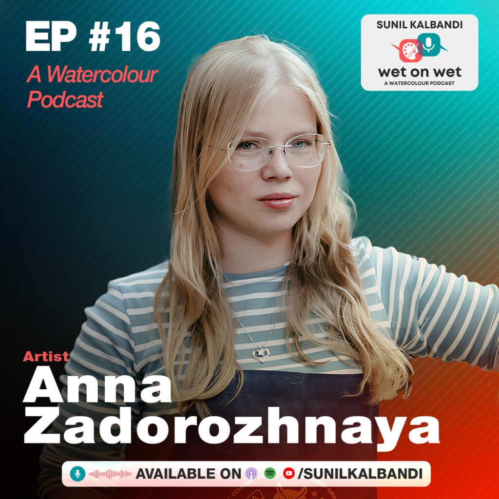 Tone, Granulation & Discipline in WatercolorWet On Wet Podcast In this deeply insightful episode of the Wet On Wet Podcast, host Sunil Kalbandi speaks with internationally acclaimed watercolor artist Anna Zadorozhnaya — a Schmincke and Da Vinci Brushes brand ambassador, professional educator, and author best known for her evocative snowy mountain landscapes. Anna shares her